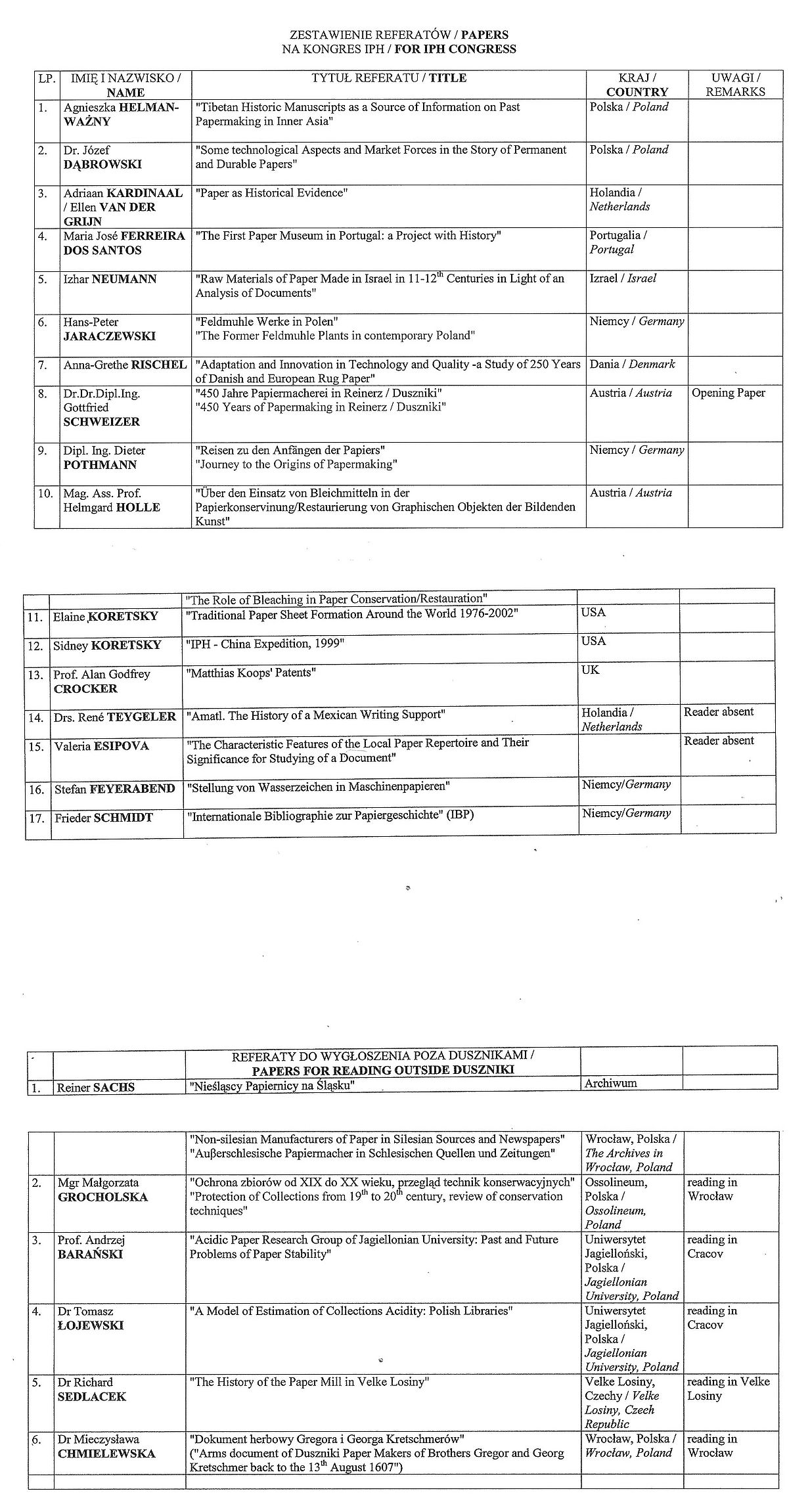 IPH congress: September 3-10, 2004 in Duszniki Zdrój-Cracow (PL)