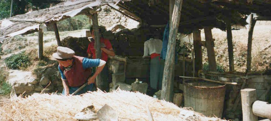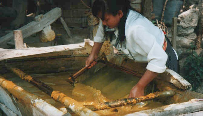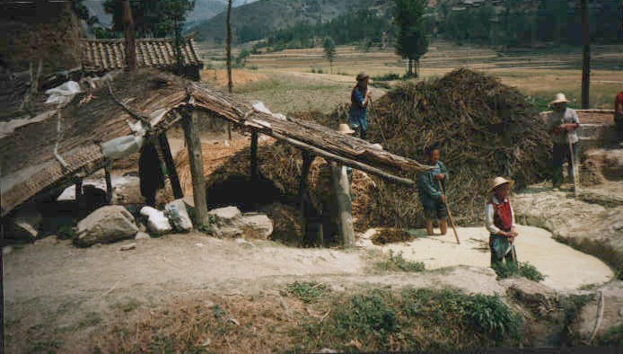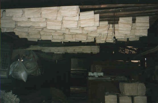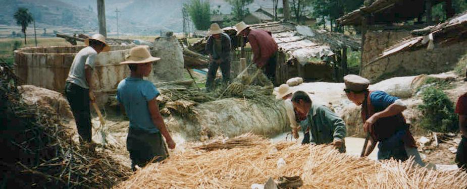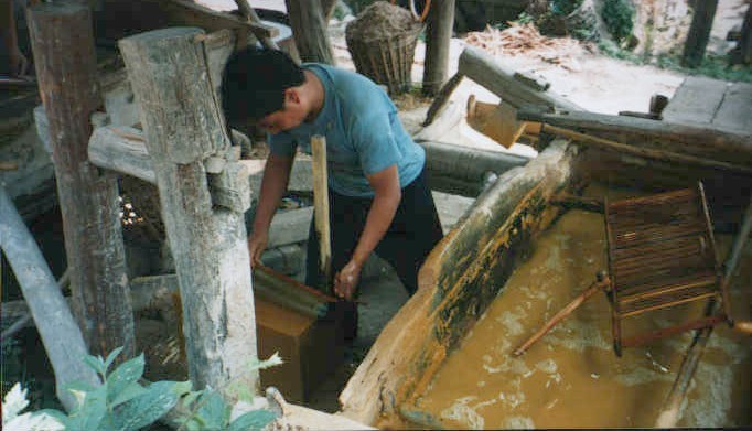 village in Zha Shui County is the inner bark of the mulberry tree. We witnessed a special beating