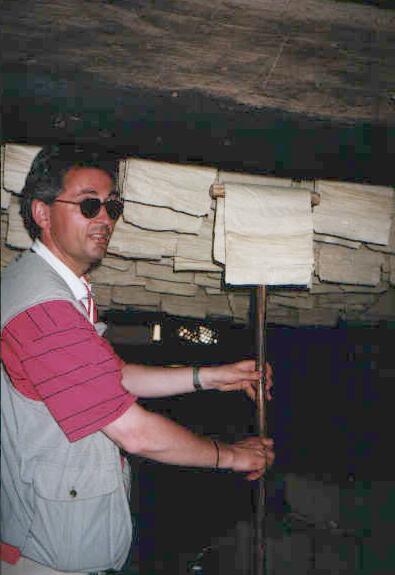 Mrs. Elaine Koretsky, director of the Museum of Paper History and the Research Institute of Paper History and Technology, both in Brookline, Massachusetts (USA), had enthousiastically offered to organize this trip for members of IPH. The offer was readilly accepted because Elaine Koretsky has done such 'papermaking pilgrimages' several times before, not only to China, but also to other South-Asian countries like Thailand and Burma. With this experience and so many contacts in China already, and being one of IPH's most knowledgeable members of hand papermaking in Asia, she was the ideal leader of this expedition. Her husband Dr. Sidney Koretsky added an extra dimension to the trip, not only for his broad knowledge of papermaking - and visually documenting the processes - but also for his great storytelling and sense of humor (see ill.).