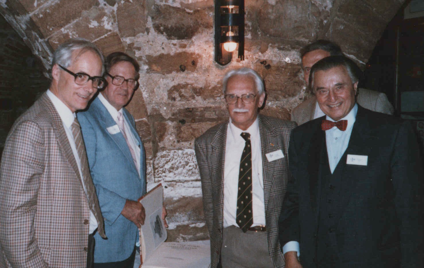 Dr. Peter Tschudin partly hidden behind George Mandl, at the 1988 congress in