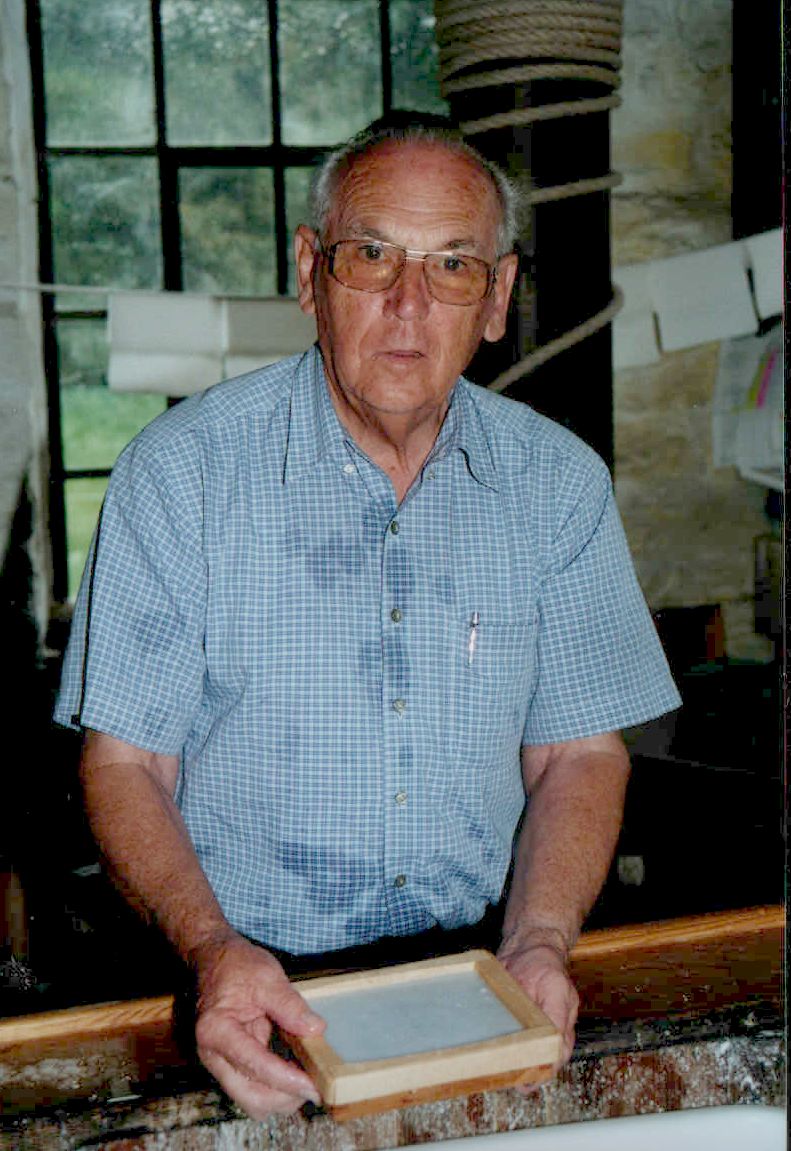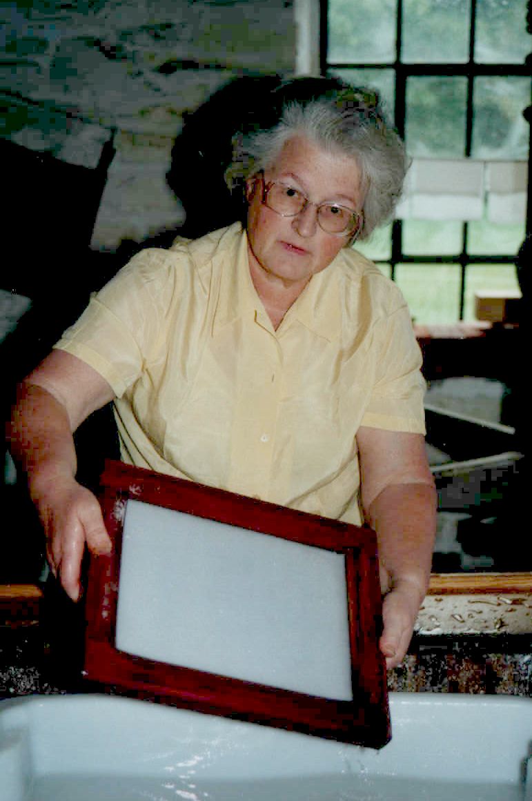 papermaking by hand in the papermill at the Freilichtmuseum, Hagen, 12 September 2000: